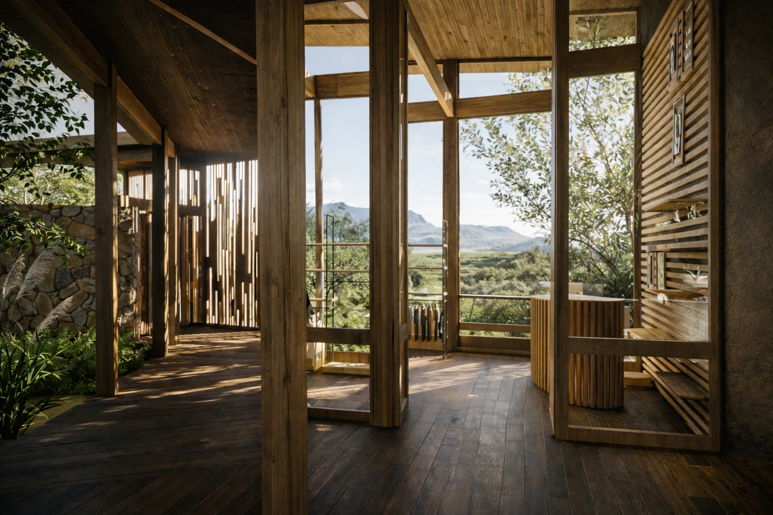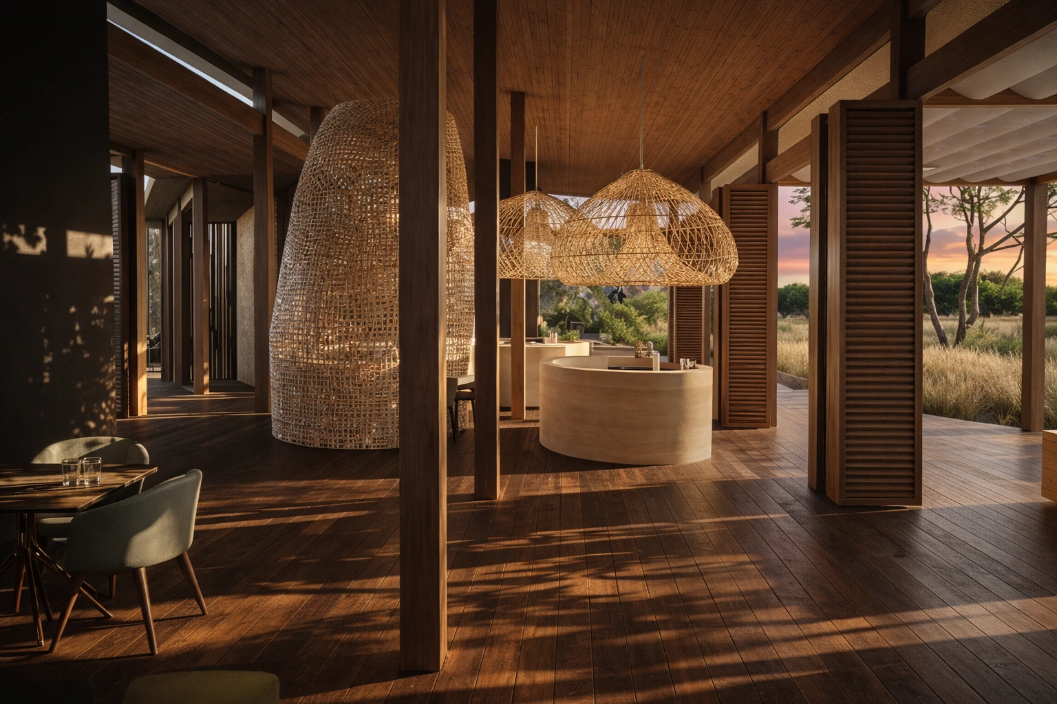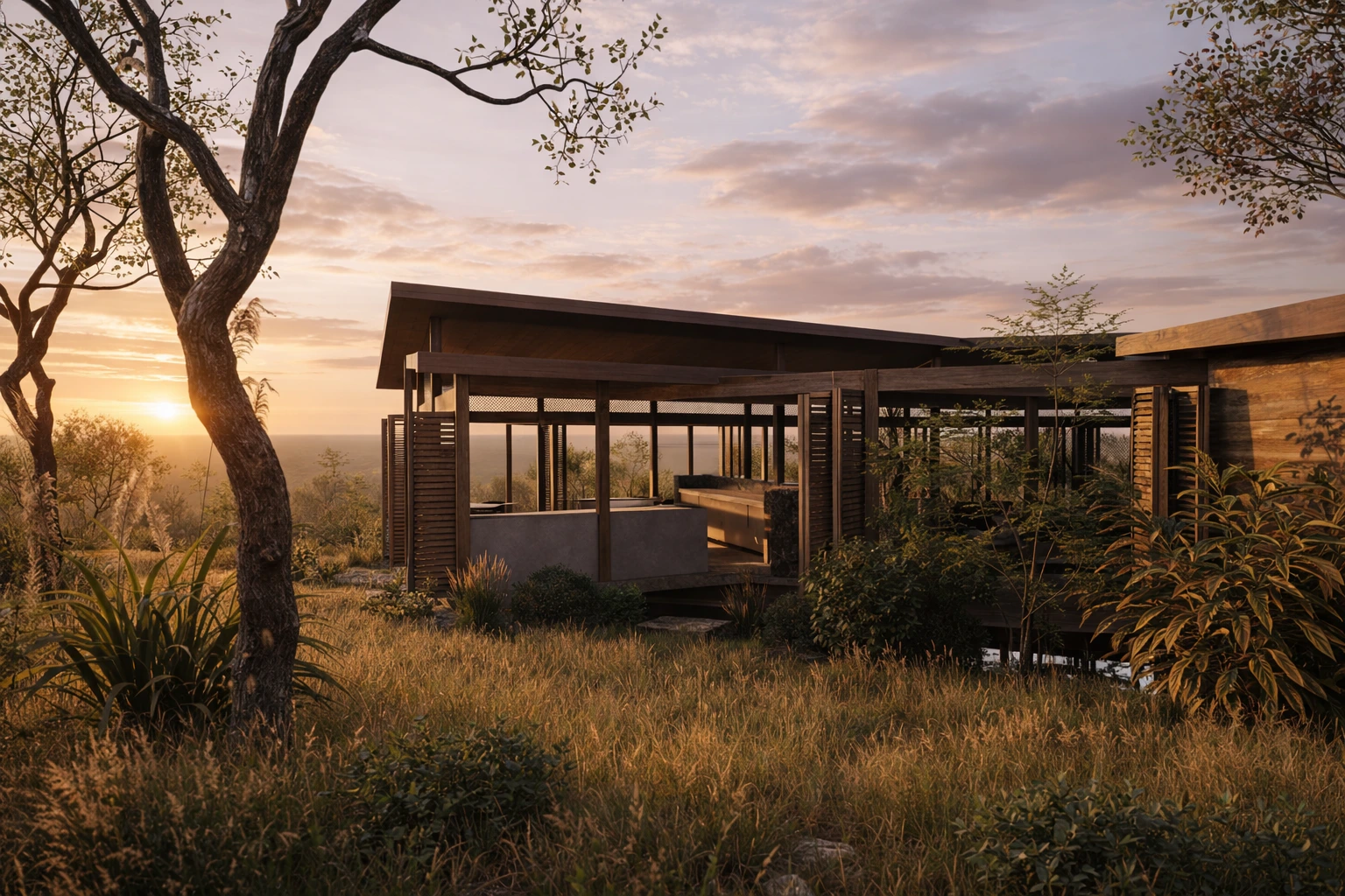 Local craftsmanship and regional materials inform the design, interpreted through a contemporary architectural language where luxury is defined by authenticity and cultural connection rather than excess. Drawing from building traditions and artisanal practices such as weaving, pottery and woodworking, the project acknowledges and celebrates the heritage of the Ankole region.