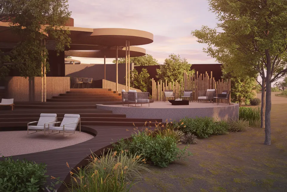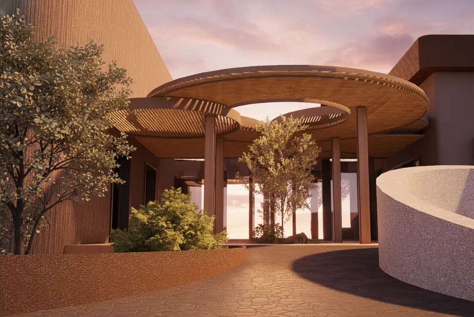 The architectural language is a refined interpretation of African design principles, expressed through clean lines, tactile materials, and a seamless integration with the landscape. The design draws inspiration from the organic forms of the surrounding terrain, translating them into gentle curves and understated geometric patterns that enrich the visual experience without overpowering the natural setting.